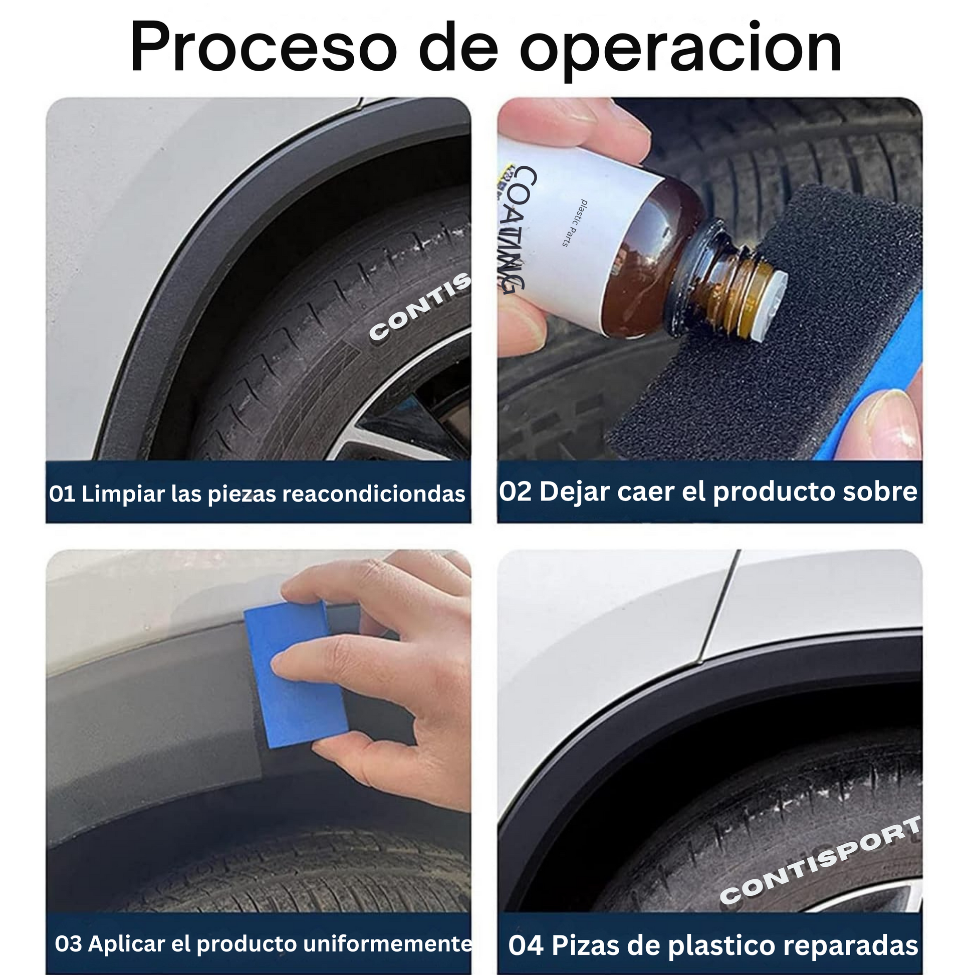 Su avanzada fórmula de nano cerámica crea una capa protectora transparente que embellece y protege todas las piezas plásticas del vehículo, manteniendo el acabado impecable hasta por 6 meses.